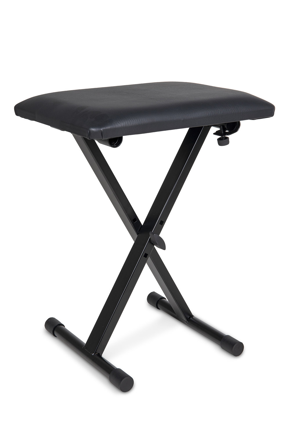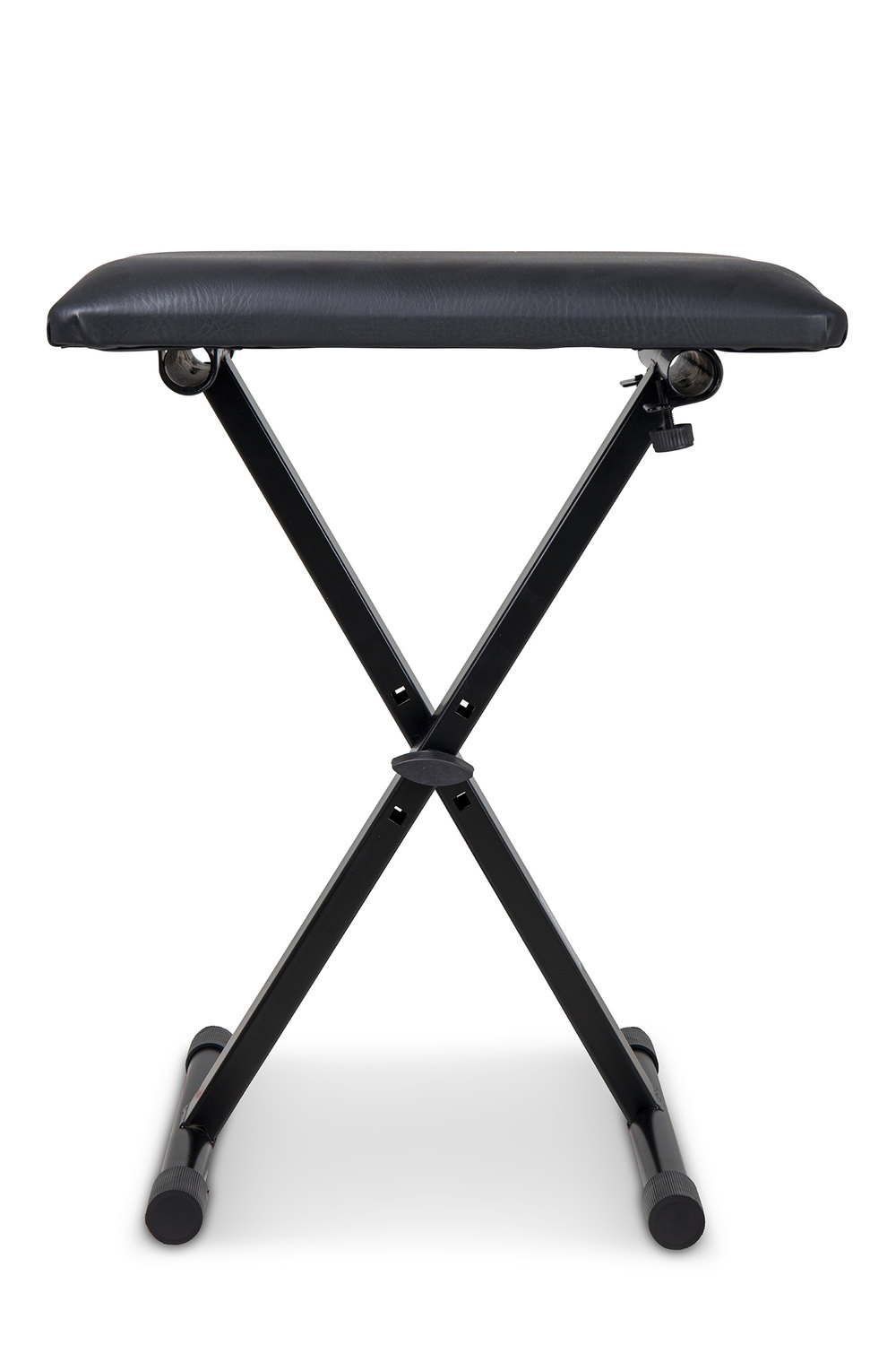 Une banquette en X, à croisillons, conçue pour les pianos numériques.