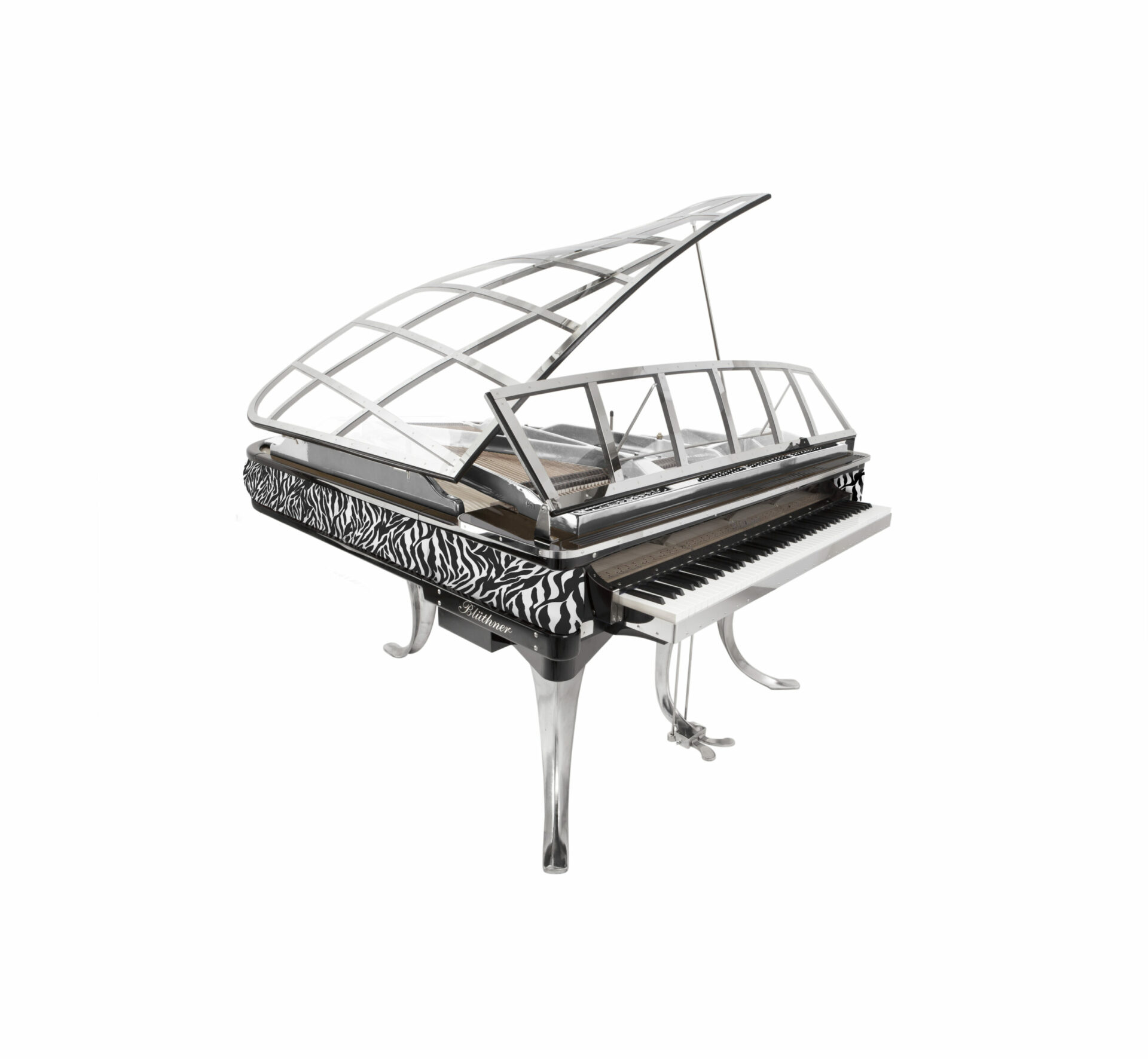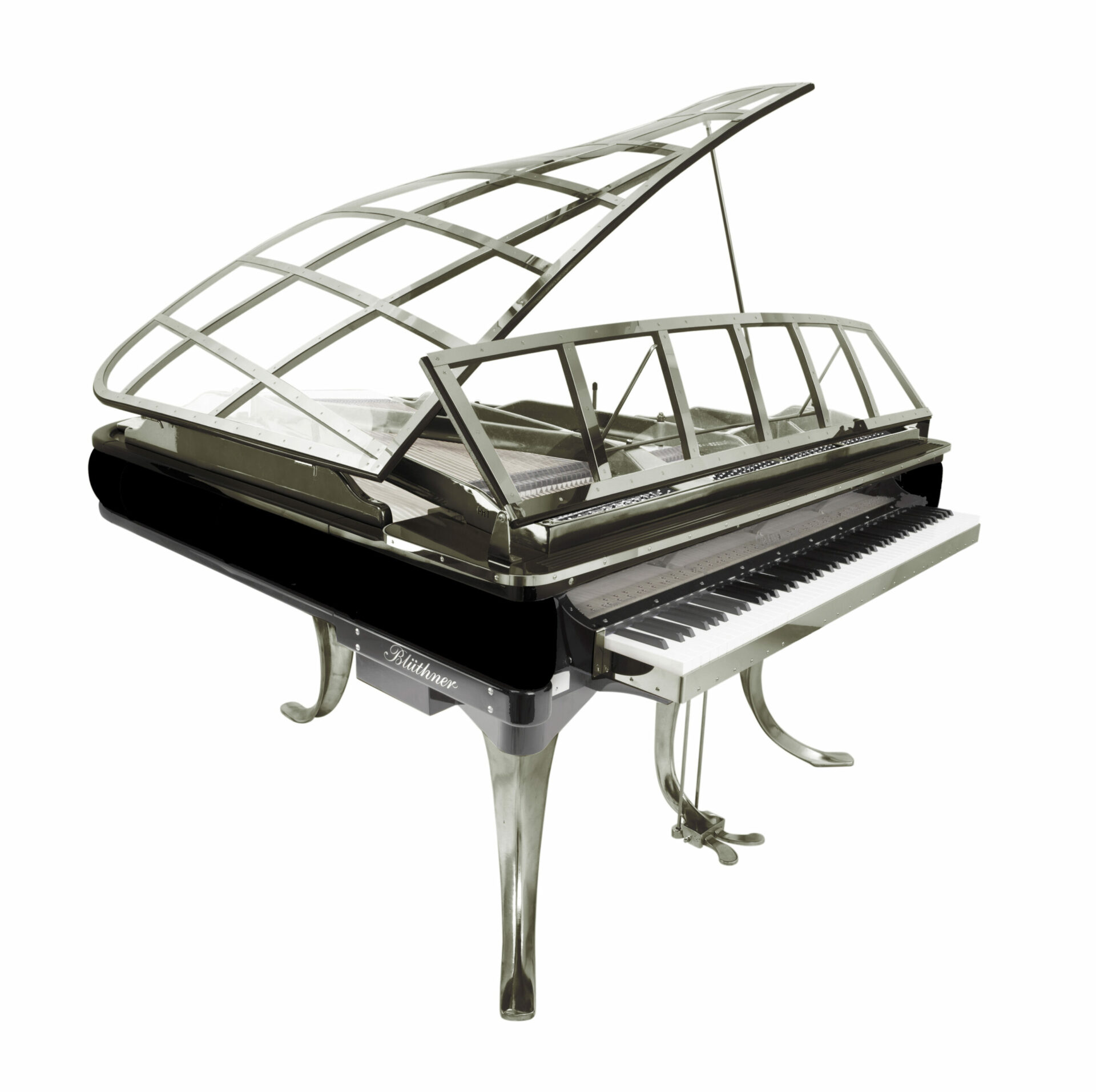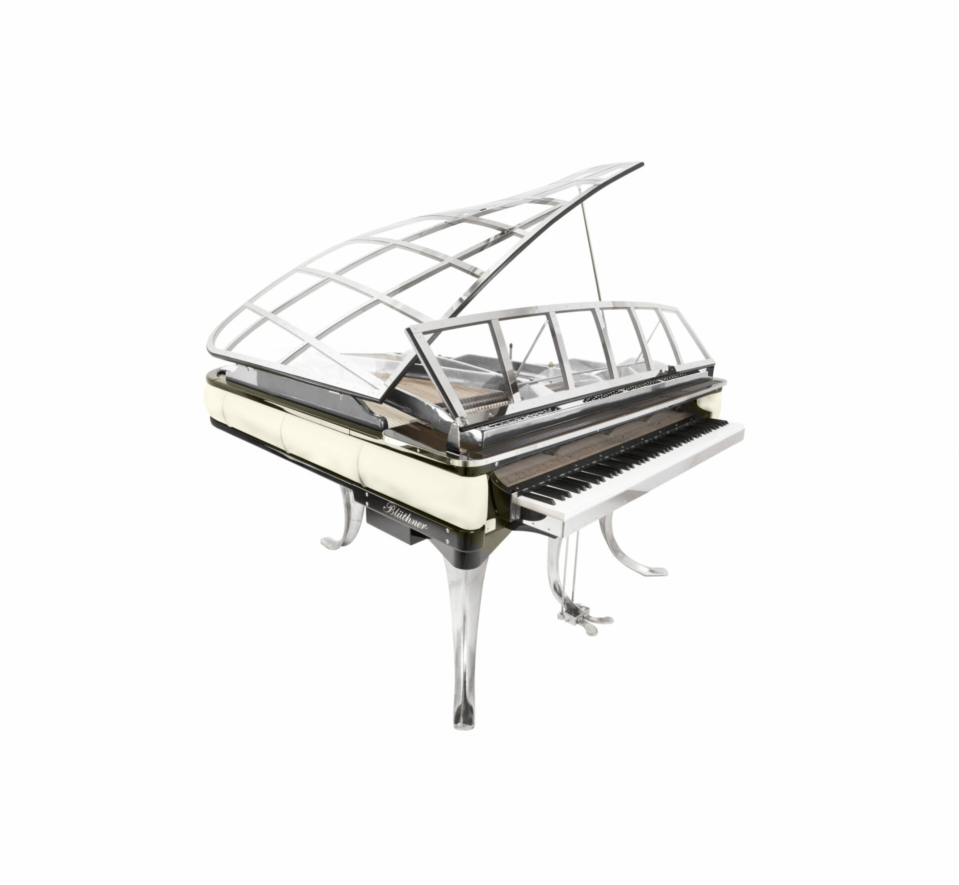 Le talent à l’état pur ! blüthner innove, interpelle et réjouit surtout avec ce fabuleux modèle PH Grand 150, déclinaison acoustique et technique du modèle 11, désigné par l’illustre créateur danois Poul Henningsen en 1930, surnommé PH dans son pays, créateur également d’un autre piano incroyable, le pianette, que blüthner a également réédité dans une version numérique haute en couleur. tout est innovation ici : bien évidemment, l’utilisation de plexi (précisément de l’altuglas, plus résistant dans le temps) transparent se remarque d’emblée et le couvercle ainsi doté évoque avec malice des ailes de libellule, conférant une légèreté inédite à l’ensemble. les pieds et la lyre chromés, aux courbes audacieuses, sont bien évidemment les pattes de cet insecte pianistique. le clavier est proéminent, comme pour inviter chacun à poser ses doigts, à oser s’assoir sans être intimidé. enfin, la ceinture du piano est recouverte d’un cuir que chacun pourra choisir au gré de son imagination, blüthner se chargeant d’accéder à vos moindres désirs en terme de texture et de coloris, sans aucune restriction. les techniciens de l’usine adorent relever les challenges et sont à ce titre particulièrement gâtés par les dirigeants de la marque, les frères christian et knut blüthner, descendants directs du fondateur julius. tous deux sont viscéralement passionnés de piano et désireux à la fois de perpétuer une tradition familiale au prestige mondialement reconnu, tout en renouvelant une image parfois vieillie et un peu désuète de cet instrument, en projetant leur société dans le 21ème siècle et en innovant sans cesse, bien sur esthétiquement comme ici mais aussi techniquement, cherchant sans fin comment rendre encore meilleurs et étonnants leurs pianos. si son design fait du PH Grand une véritable pièce de collection, il ne faut pas oublier que son potentiel musical est à la hauteur de son originalité. cet objet hors norme bénéficie d’une qualité de production dont seule une petite poignée de fabriques peuvent se prévaloir. ce magnifique savoir-faire, visible dans chaque parcelle de l’instrument, renforce encore le plaisir et l’émotion de posséder une telle pièce d’art.