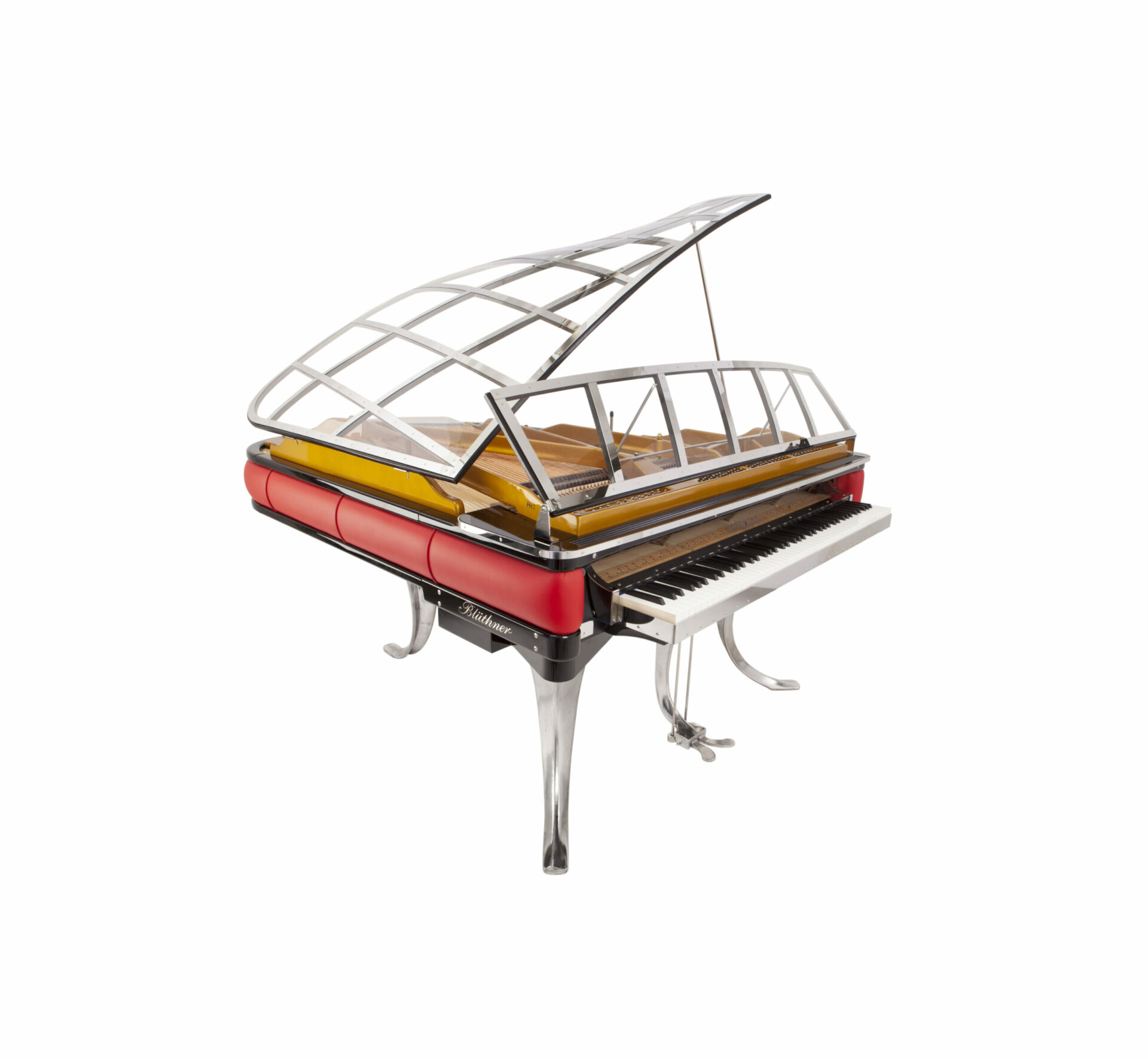 Le talent à l’état pur ! blüthner innove, interpelle et réjouit surtout avec ce fabuleux modèle PH Grand 185, déclinaison acoustique et technique du modèle 6 dont le meuble est la réédition d’un modèle créé en 1930 par l’architecte danois Poul Henningsen, surnommé PH dans son pays, très prisé du marché de l’art, créateur également d’un autre piano incroyable, le pianette, que blüthner a également réédité dans une version numérique haute en couleur. tout est innovation ici : bien évidemment, l’utilisation de plexi (précisément de l’altuglas, plus résistant dans le temps) transparent se remarque d’emblée et le couvercle ainsi doté évoque avec malice des ailes de libellule, donnant une légèreté inédite à l’ensemble. les pieds et la lyre chromés, aux courbes audacieuses, sont bien évidemment les pattes de cet insecte pianistique. le clavier est proéminent, comme pour inviter chacun à poser ses doigts, à oser s’assoir sans être intimidé. enfin, la ceinture du piano est recouverte d’un cuir que chacun pourra choisir au gré de son imagination, blüthner se chargeant d’accéder à vos moindres désirs en terme de texture et de coloris, sans aucune restriction. les techniciens de l’usine adorent relever les challenges et sont à ce titre particulièrement gâtés par les dirigeants de la marque, les frères christian et knut blüthner, descendants directs du fondateur julius. tous deux sont viscéralement passionnés de piano et désireux à la fois de perpétuer une tradition familiale au prestige mondialement reconnu, tout en renouvelant une image parfois vieillie et un peu désuète de cet instrument, en projetant leur société dans le 21ème siècle et en innovant sans cesse, bien sur esthétiquement comme ici mais aussi techniquement, cherchant sans fin comment rendre encore meilleurs et étonnants leurs pianos. si son design fait du PH Grand une véritable pièce de collection, il ne faut pas oublier que son potentiel musical est à la hauteur de son originalité. cet objet hors norme bénéficie d’une qualité de production dont seule une petite poignée de fabriques peuvent se prévaloir. ce magnifique savoir-faire, visible dans chaque parcelle de l’instrument, renforce encore le plaisir et l’émotion de posséder une telle pièce d’art.